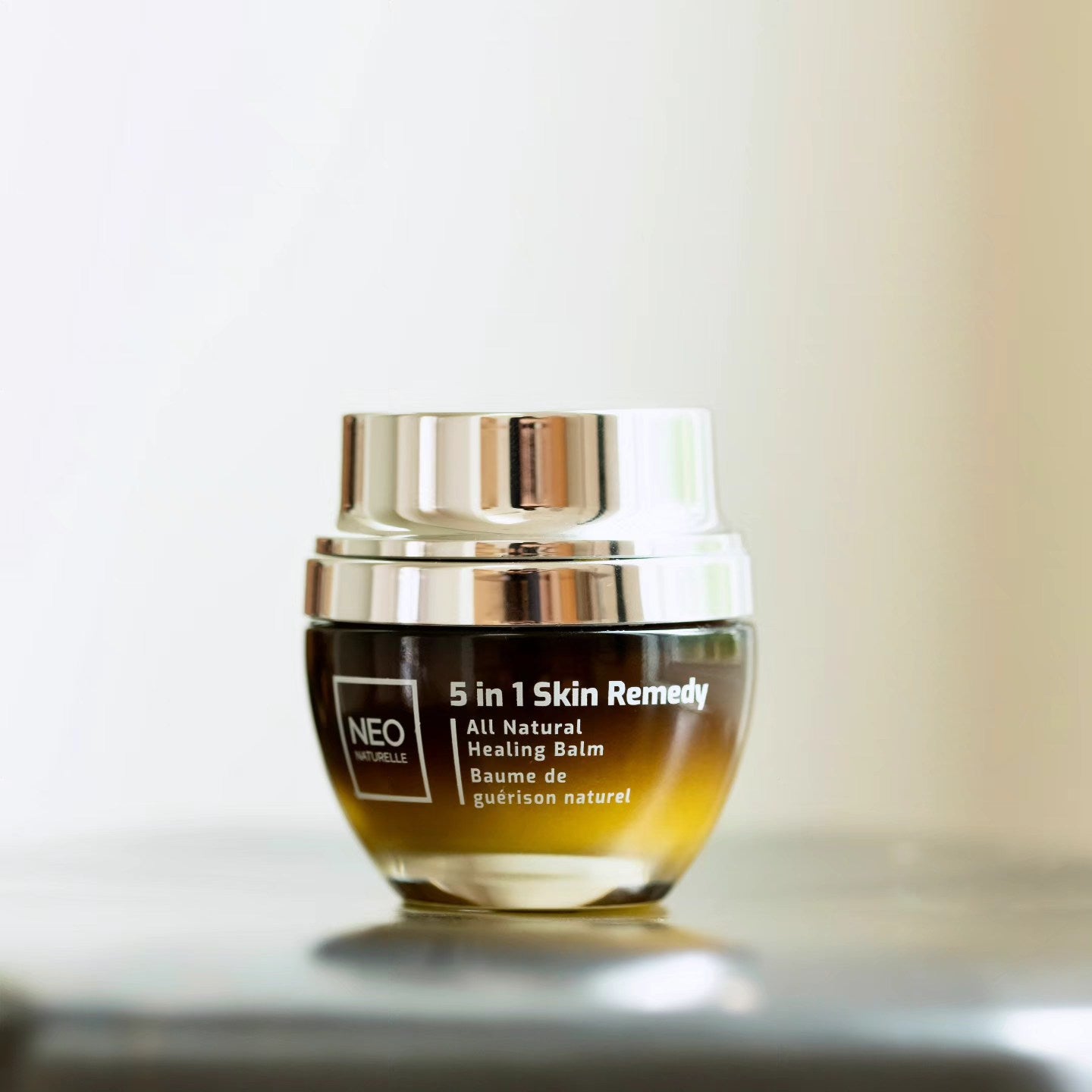 5 in 1 Skin Remedy is a powerful blend of 12 botanicals combined into one seamless step. Our all-purpose healing balm supports deep moisture replenishment with anti-inflammatory, antioxidant, anti-microbial, regenerative, and pain-relieving herbal infusions.